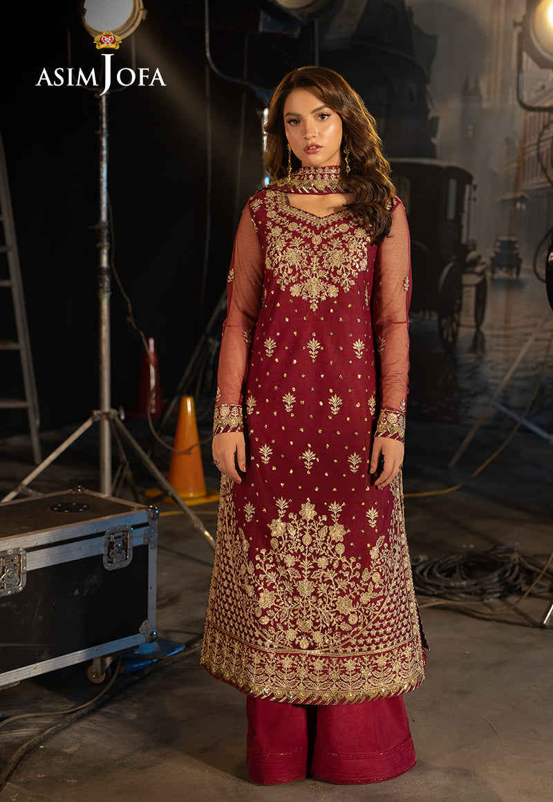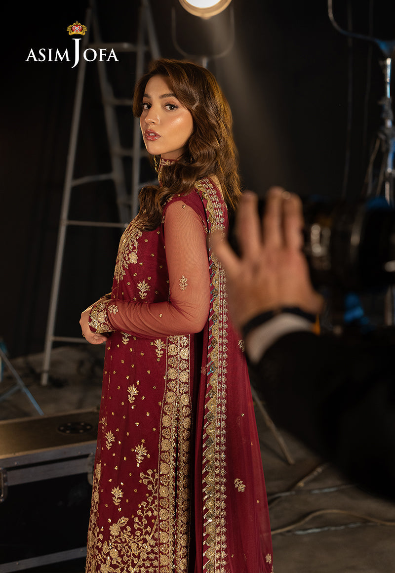 Asim Jofa 3 Piece Custom Stitched Suit - Magenta - LB30118