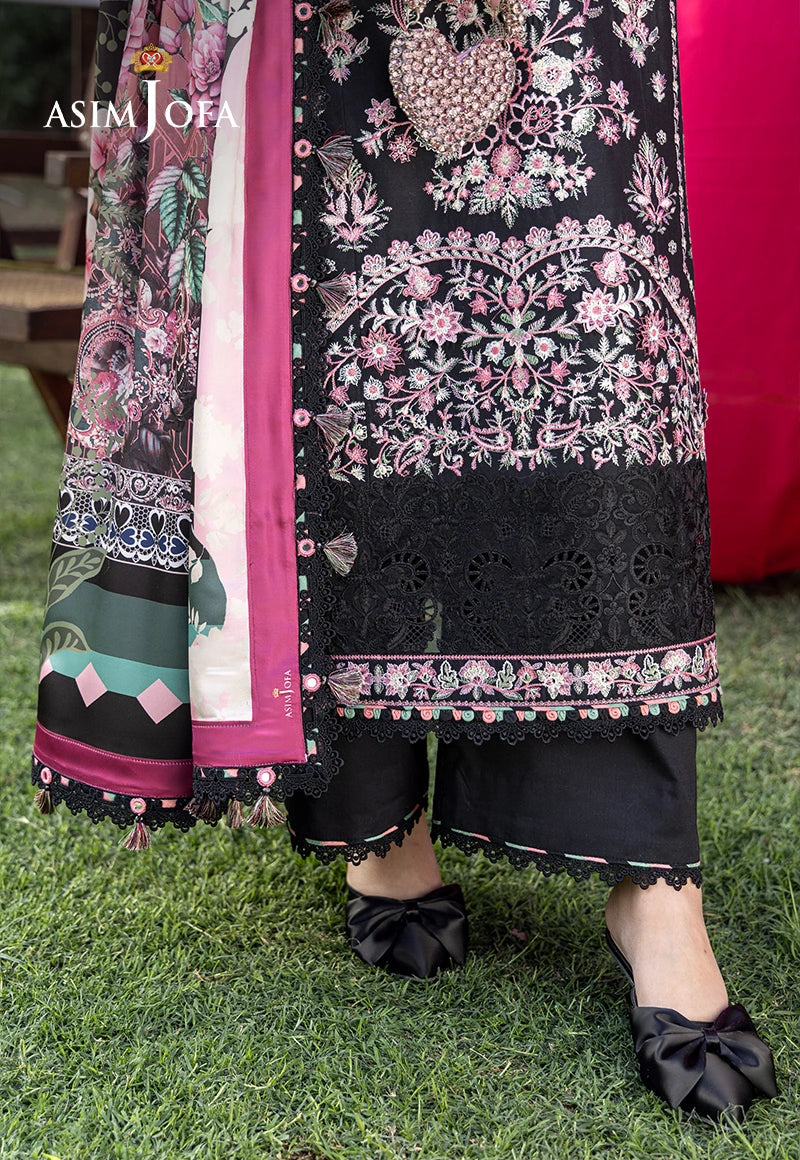 Asim Jofa 3 Piece Custom Stitched Suit - Black - LB31486