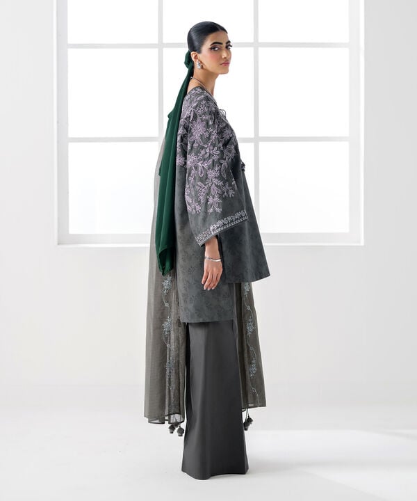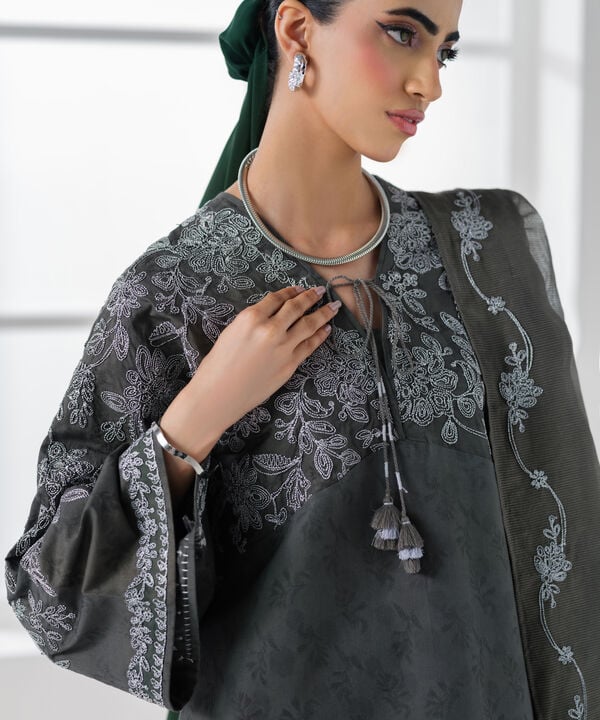 Dyed Embroidered Cotton Jacquard Shirt Sleeves 1.30m