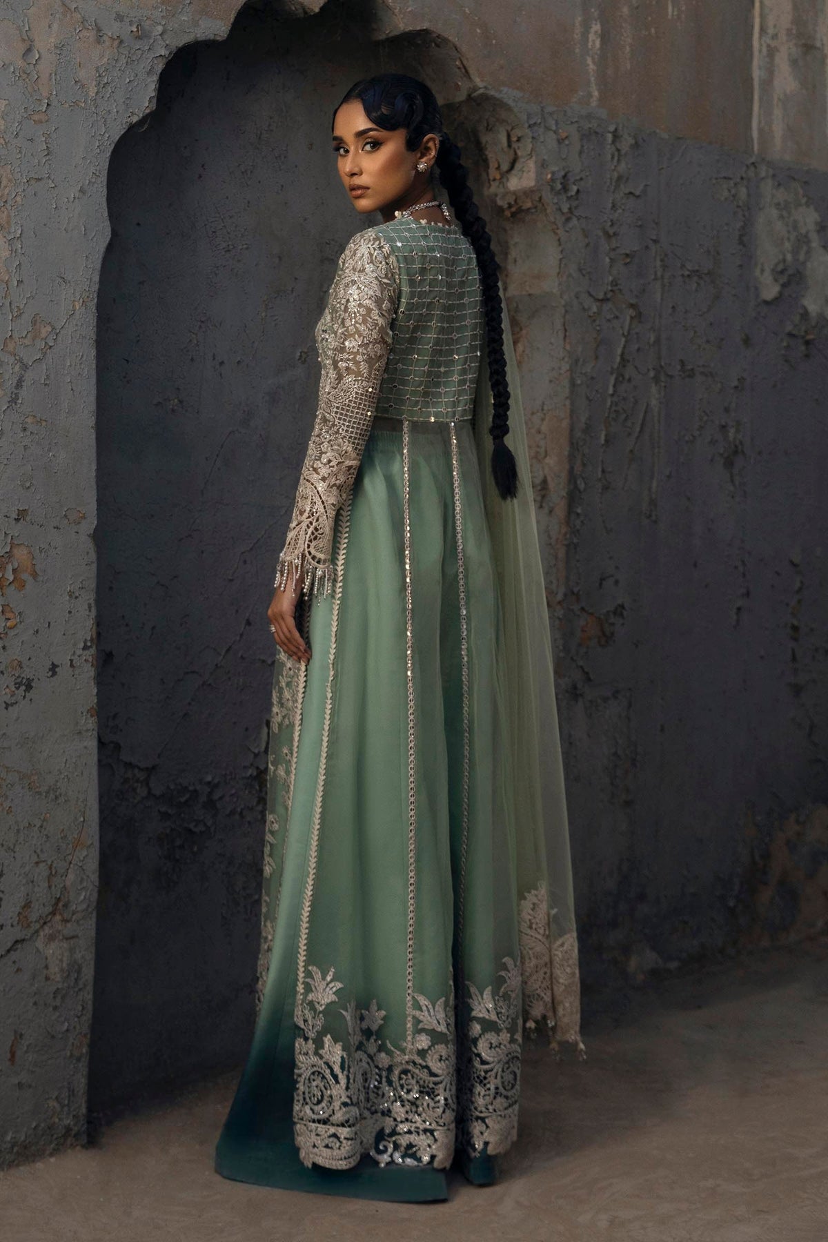 | Back Body Jaal Sage Green Organza | 1 Piece | |