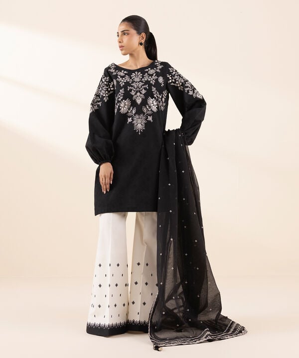 Dyed Embroidered Cotton Trouser 2pc