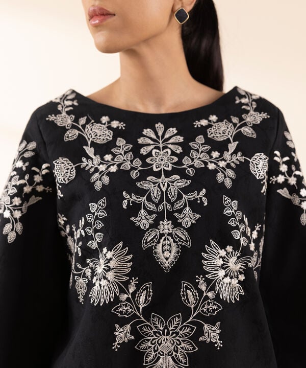 Dyed Embroidered Cotton Jacquard Shirt Front 1.15m