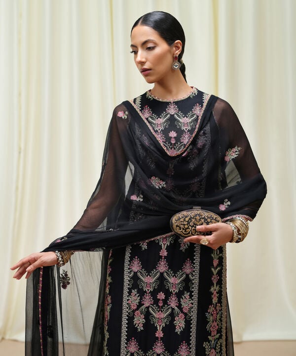 Dyed Embroidered Crinkle Chiffon Shirt Sleeves 1.00m