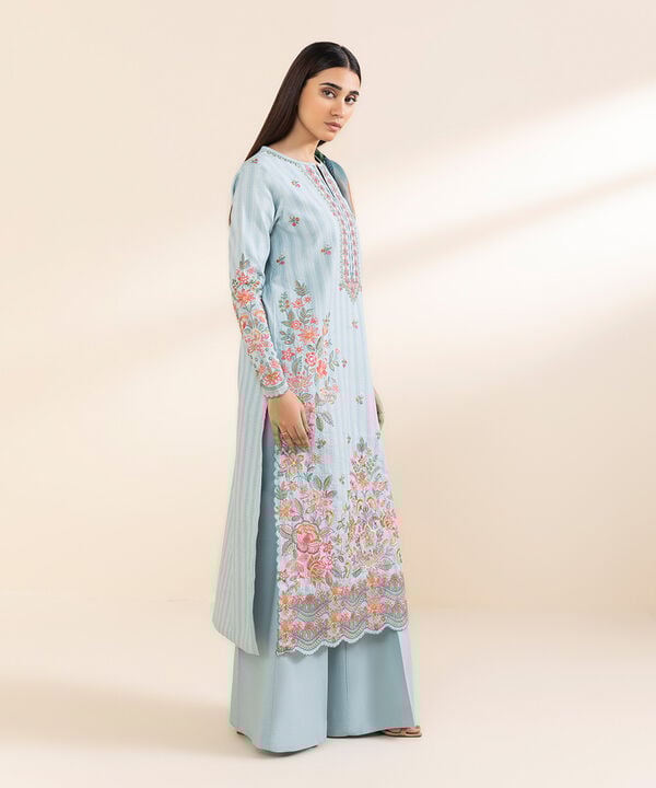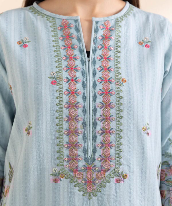 Dyed Embroidered Textured Cotton Shirt Front 0.70m