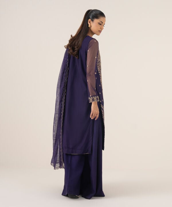Dyed Embroidered Blended Net Shirt Front Panels 3pc