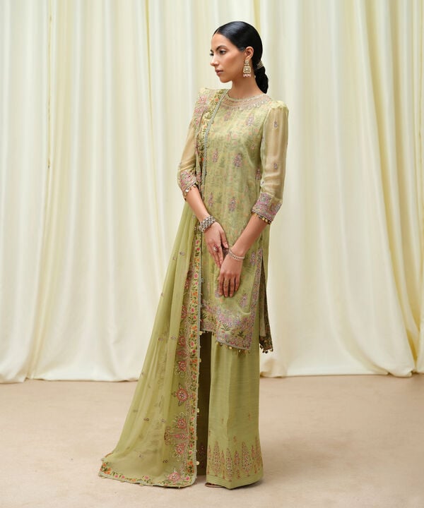 Dyed Embroidered Viscose Raw Silk Trouser 2pc