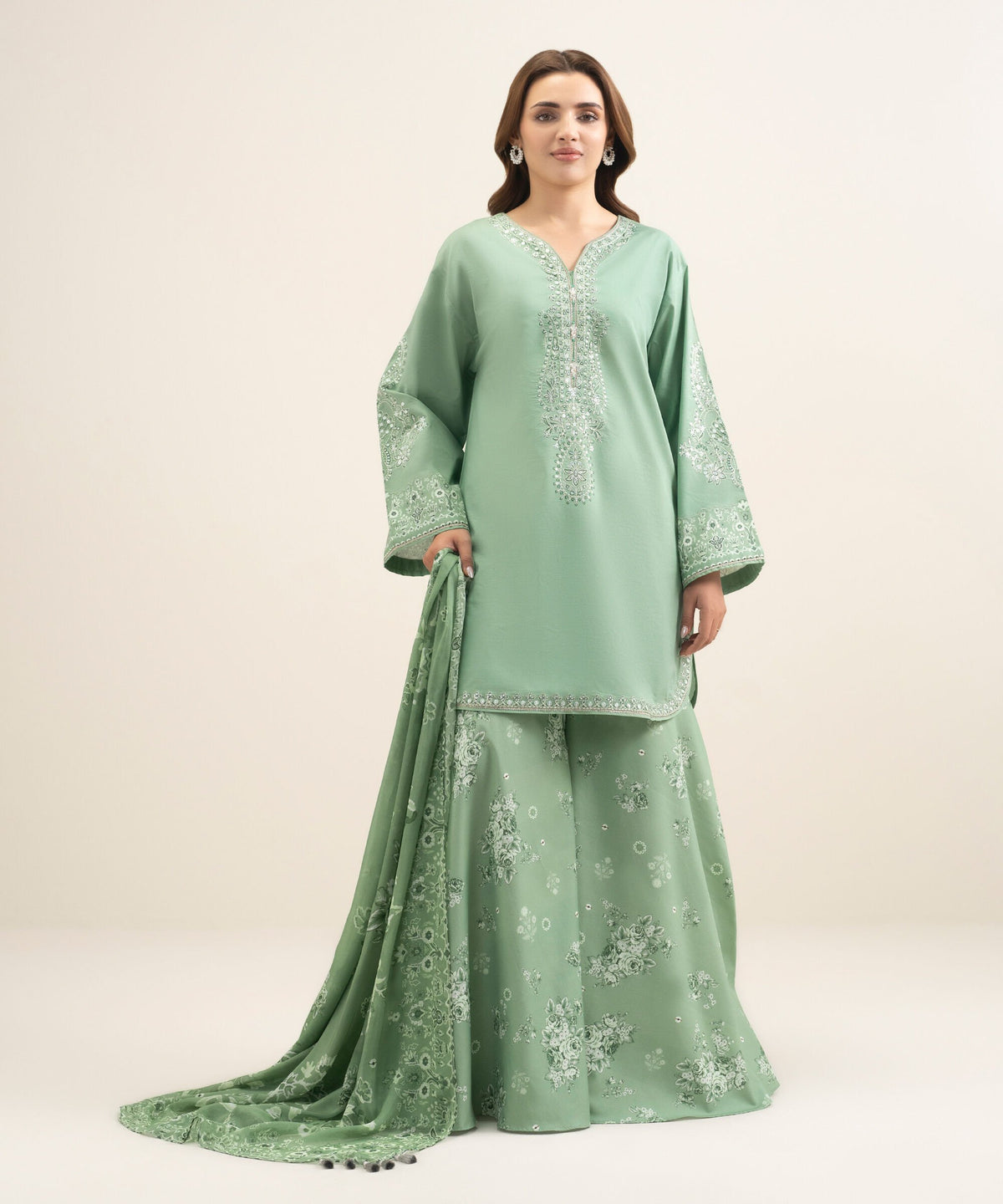 We try to make your dress as closer as possible to the model picture. We guarantee 100% original branded dress however there can a slight difference between your stitched outfit and the model picture because: