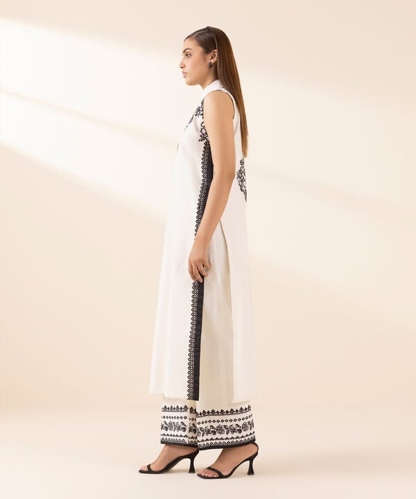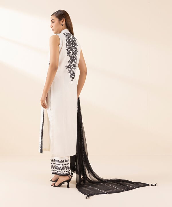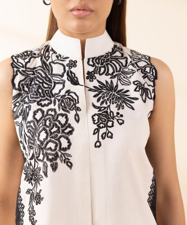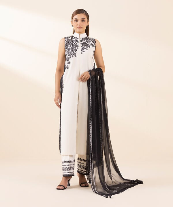Dyed Embroidered Cotton Jacquard Shirt Front Panels 3pc