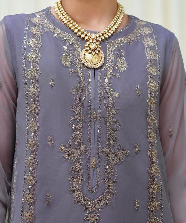 Dyed Embroidered Blended Net Shirt Sleeves 0.66m