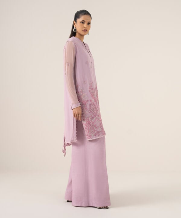 Dyed Embroidered Blended Chiffon Shirt Sleeves 0.66m