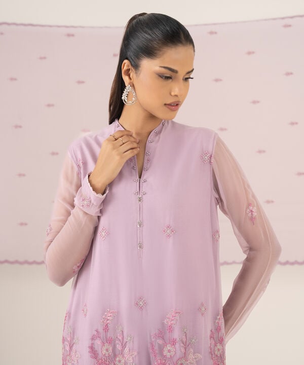 Dyed Embroidered Blended Chiffon Shirt Front 1.00m