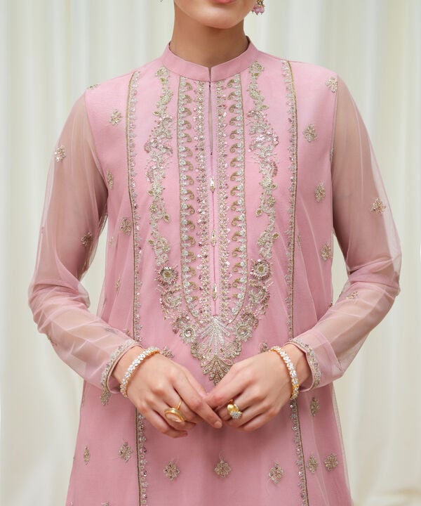 Dyed Embroidered Blended Net Shirt Sleeves 1.00m