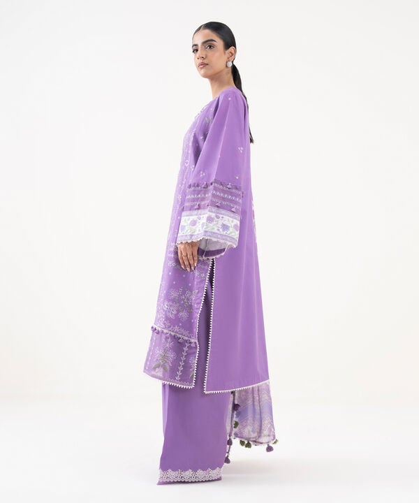 Dyed Embroidered Light Cotton Satin Shirt Front Panels 3pc