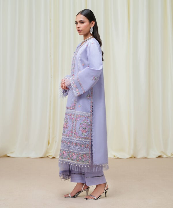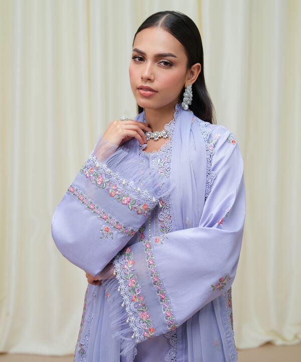 Dyed Embroidered Cotton Net Shirt Front Panels 3pc