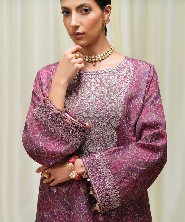 Printed Embroidered Viscose Raw Silk Shirt Front Panels 3pc