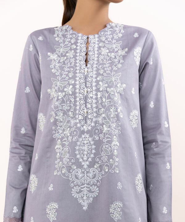 Dyed Embroidered Light Cotton Satin Shirt Front Panels 3pc