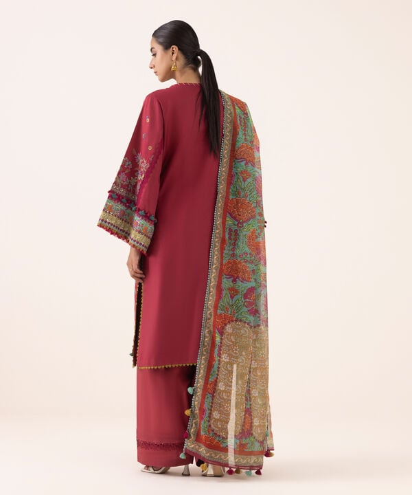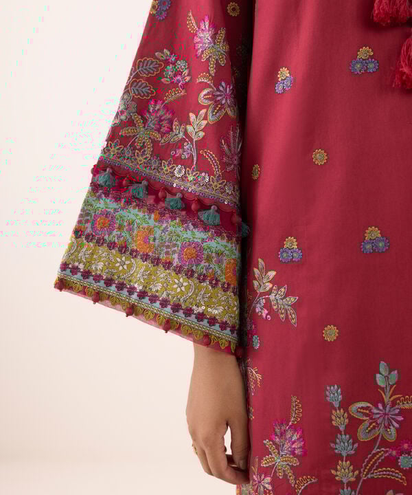 Dyed Embroidered Light Cotton Satin Shirt Front Panels 3pc