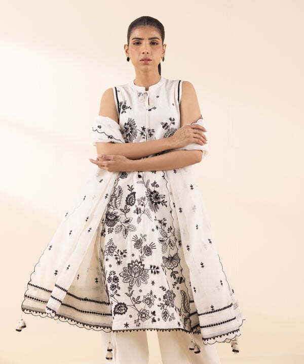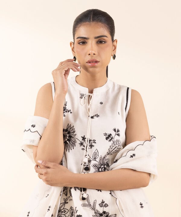 Dyed Embroidered Blended Textured Karandi Dupatta 2.50m