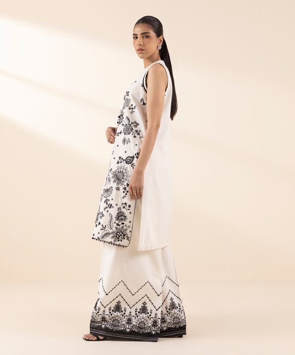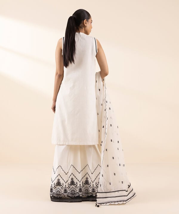 Dyed Embroidered Cotton Jacquard Shirt Front Panels 3pc