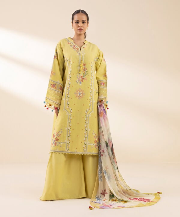 Dyed Embroidered Dobby Shirt Front Panels 3pc