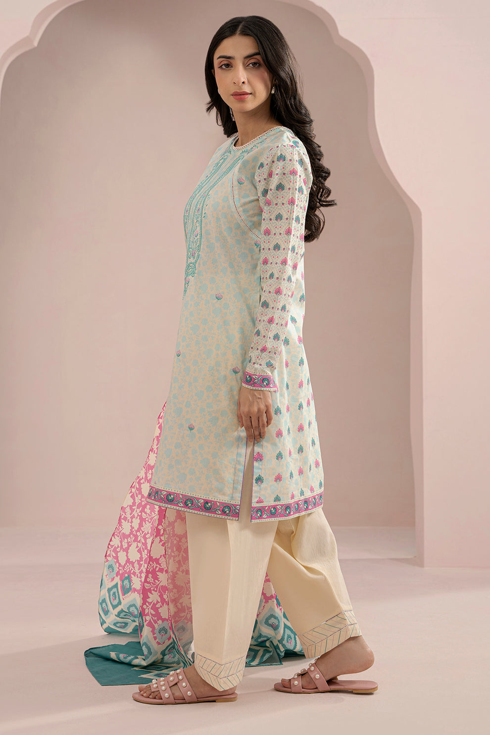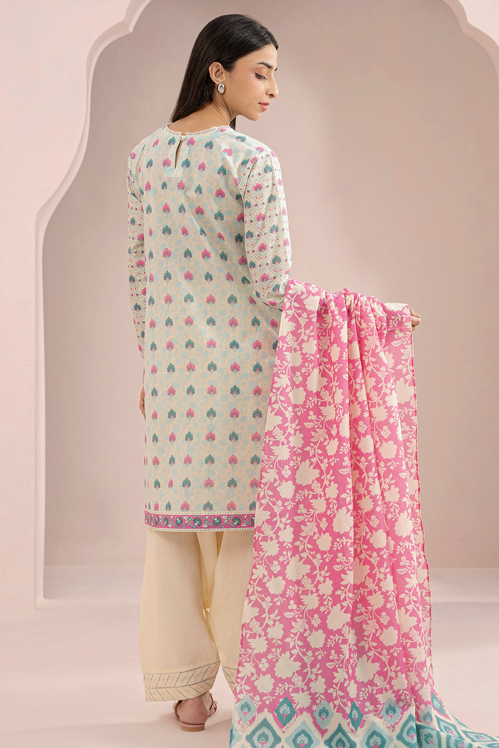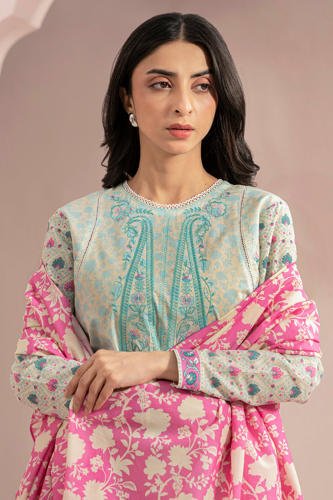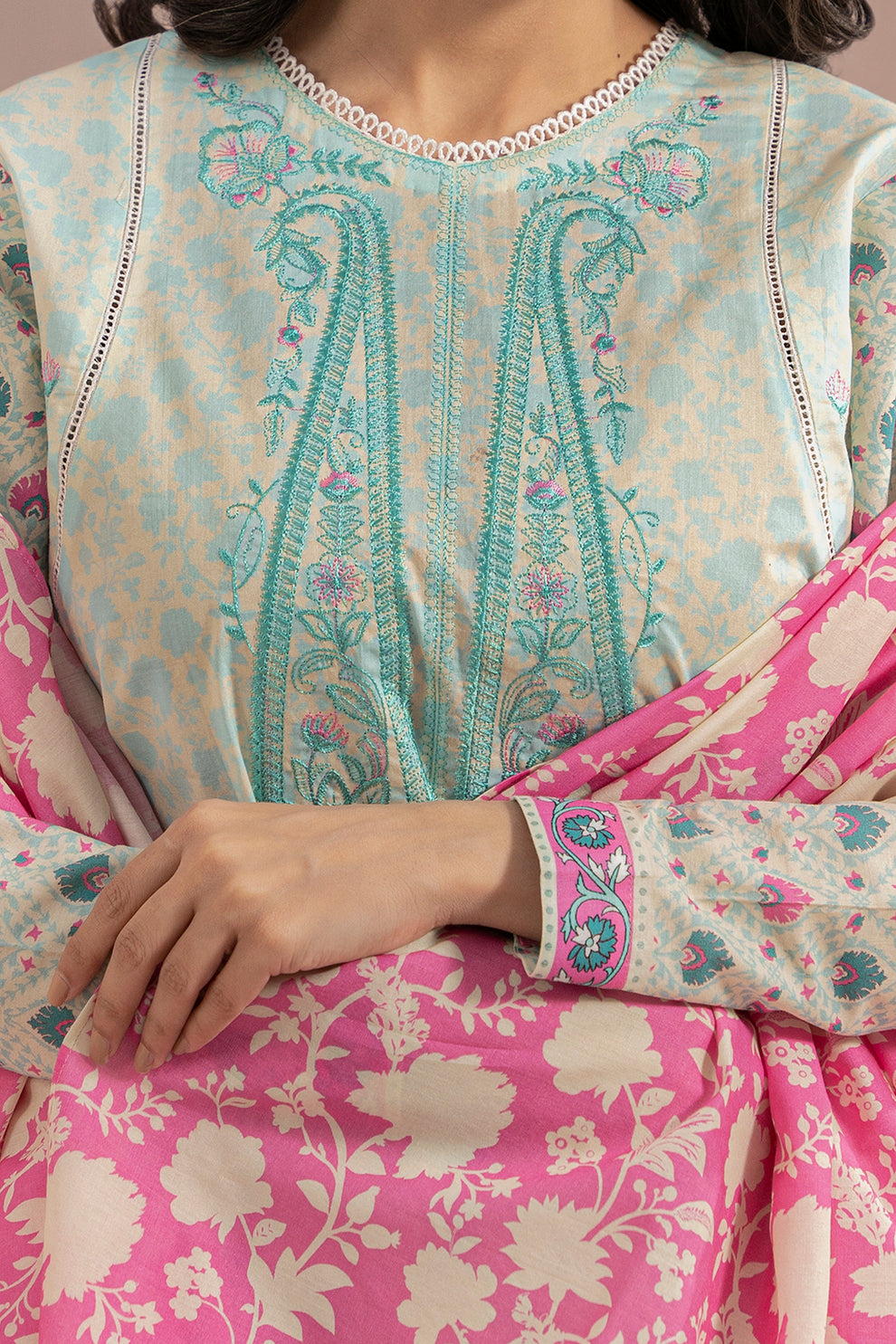 2 Piece Embroidered Lawn Shirt Dupatta in Off White Color