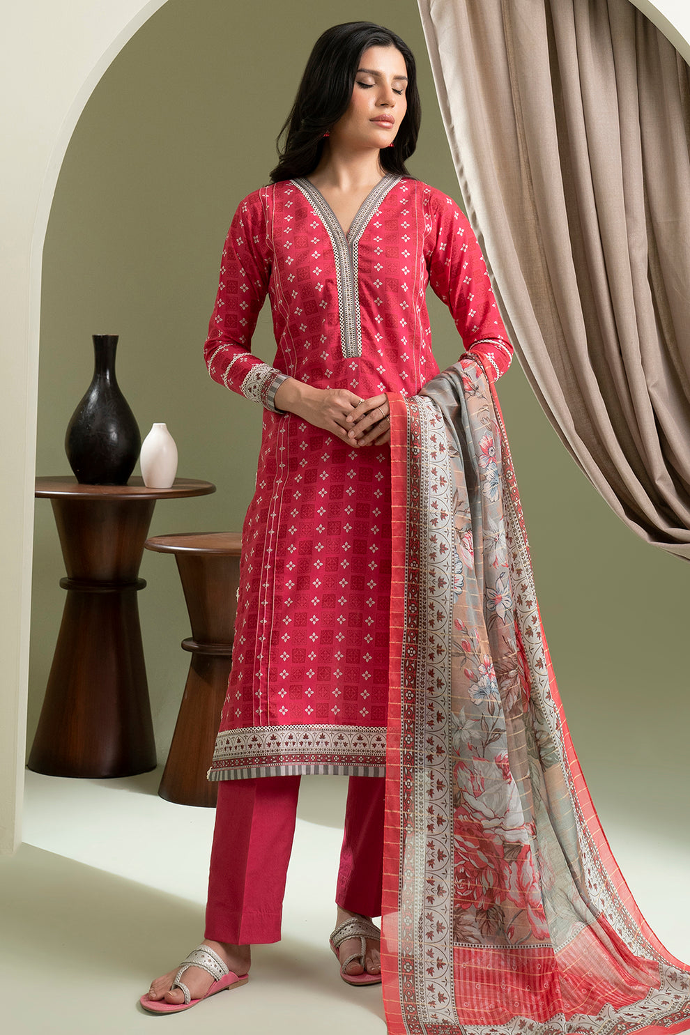 Unit price per3 Piece Printed Lawn Shirt Shalwar Dupatta in Pink Color