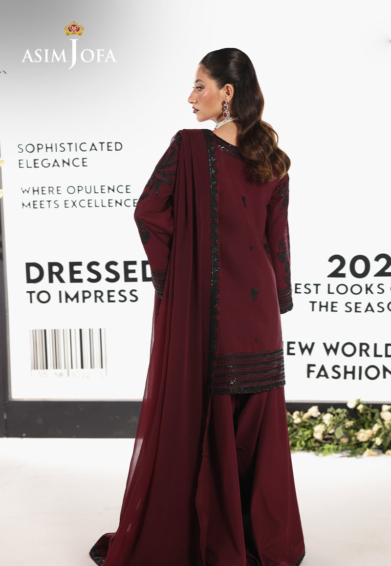 Asim Jofa 3 Piece Custom Stitched Suit - Maroon - LB30499