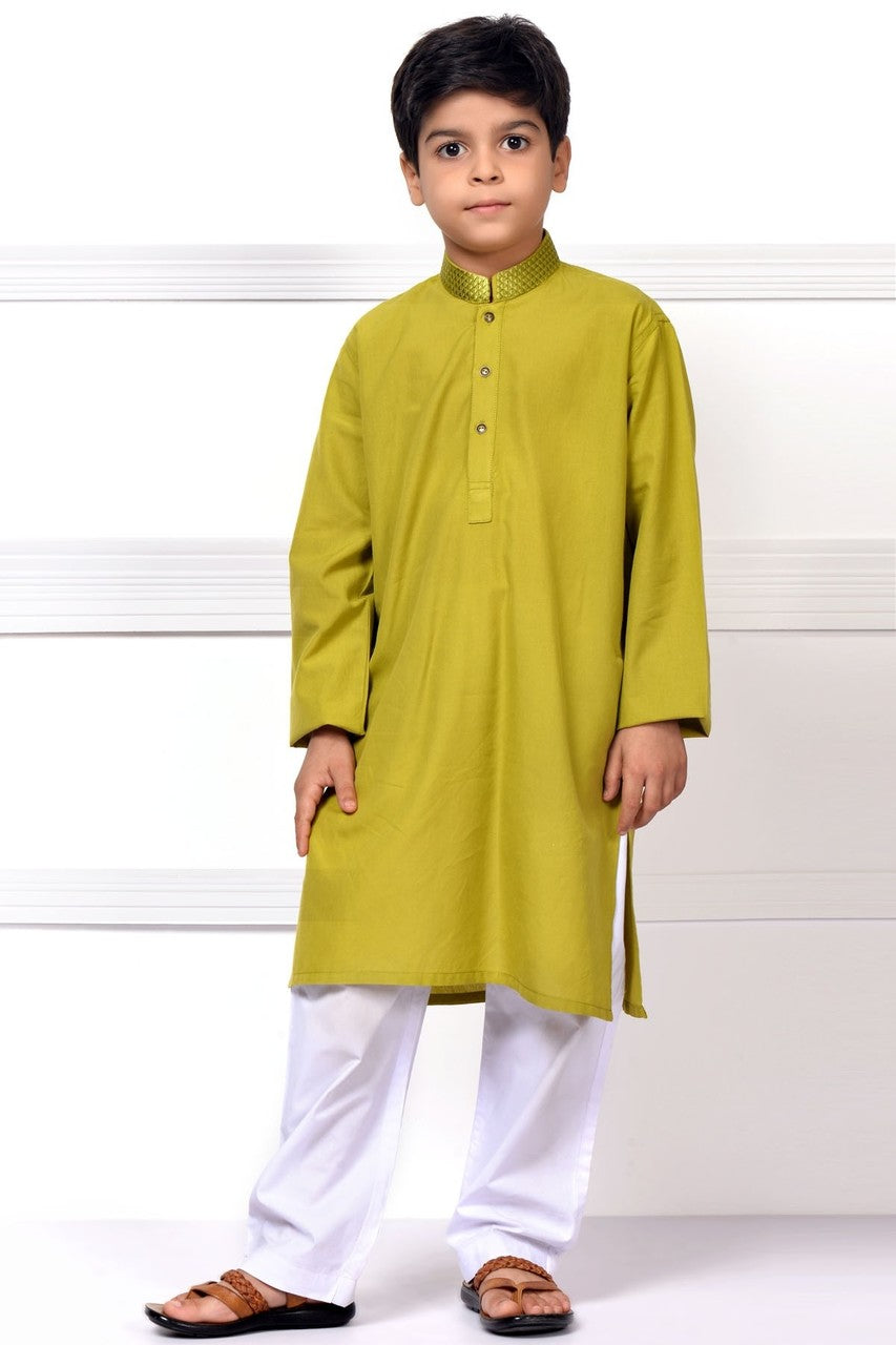 Ready to Wear Embroidered Kurta For Boys - Green - LB1605