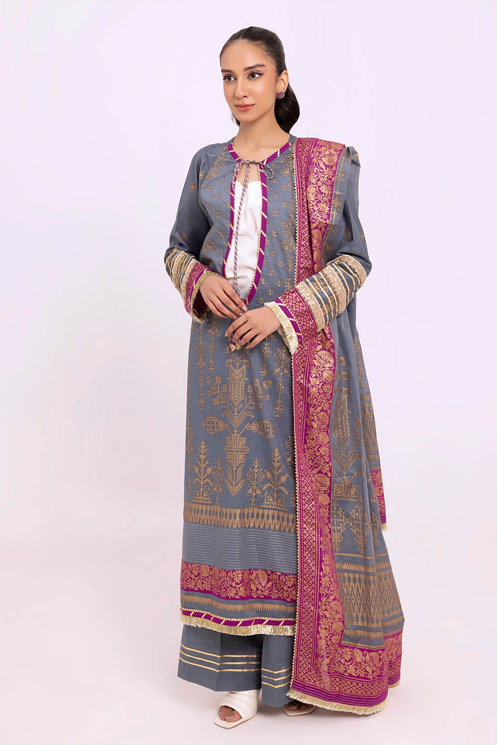 Gul Ahmed 3 Piece Custom Stitched Suit - Gray - LB29876