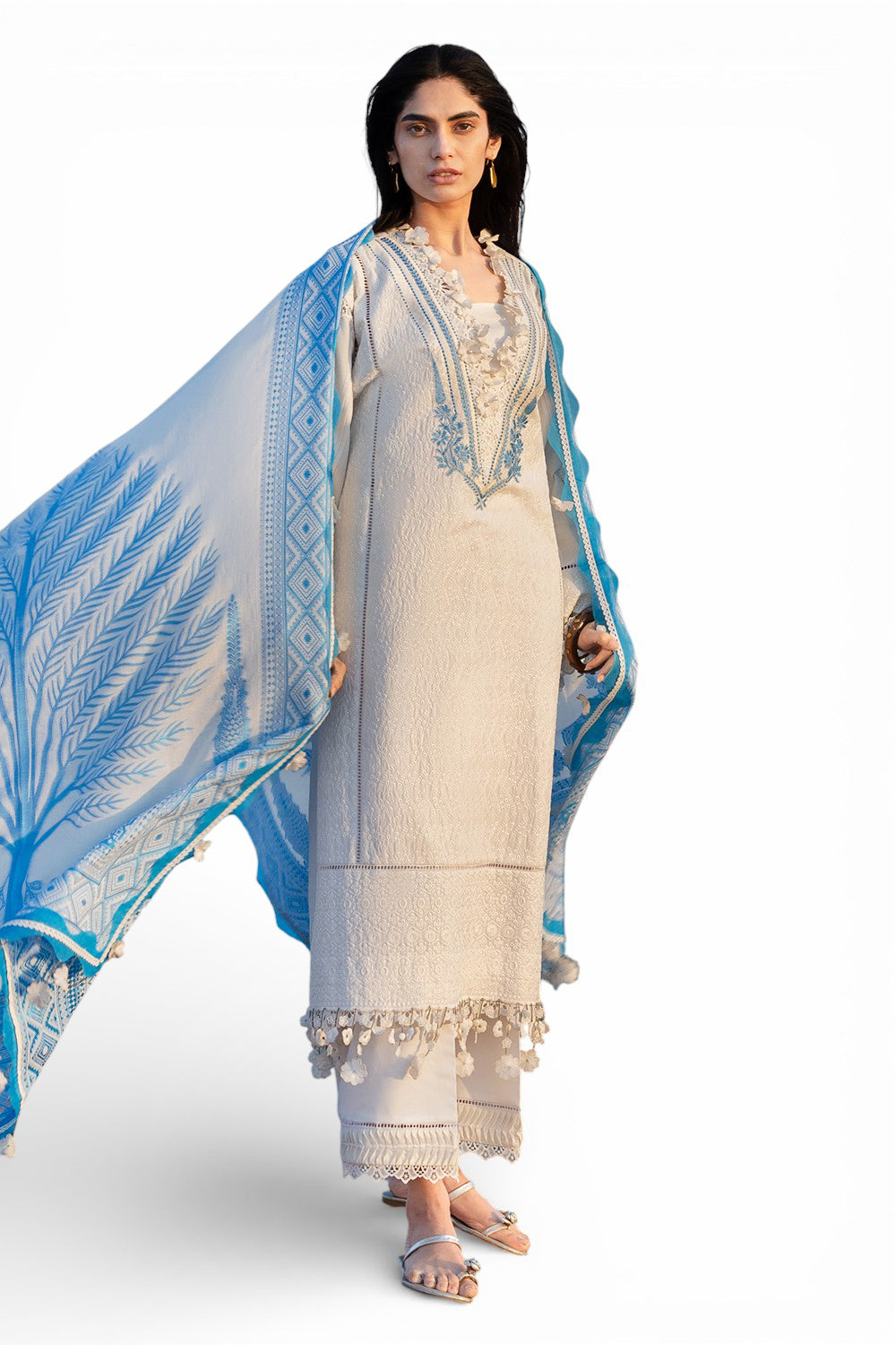 • Embroidered Lawn Shirt Front, Back & Sleeves. Embroidered Neckline on Organza – 2.35 Meters