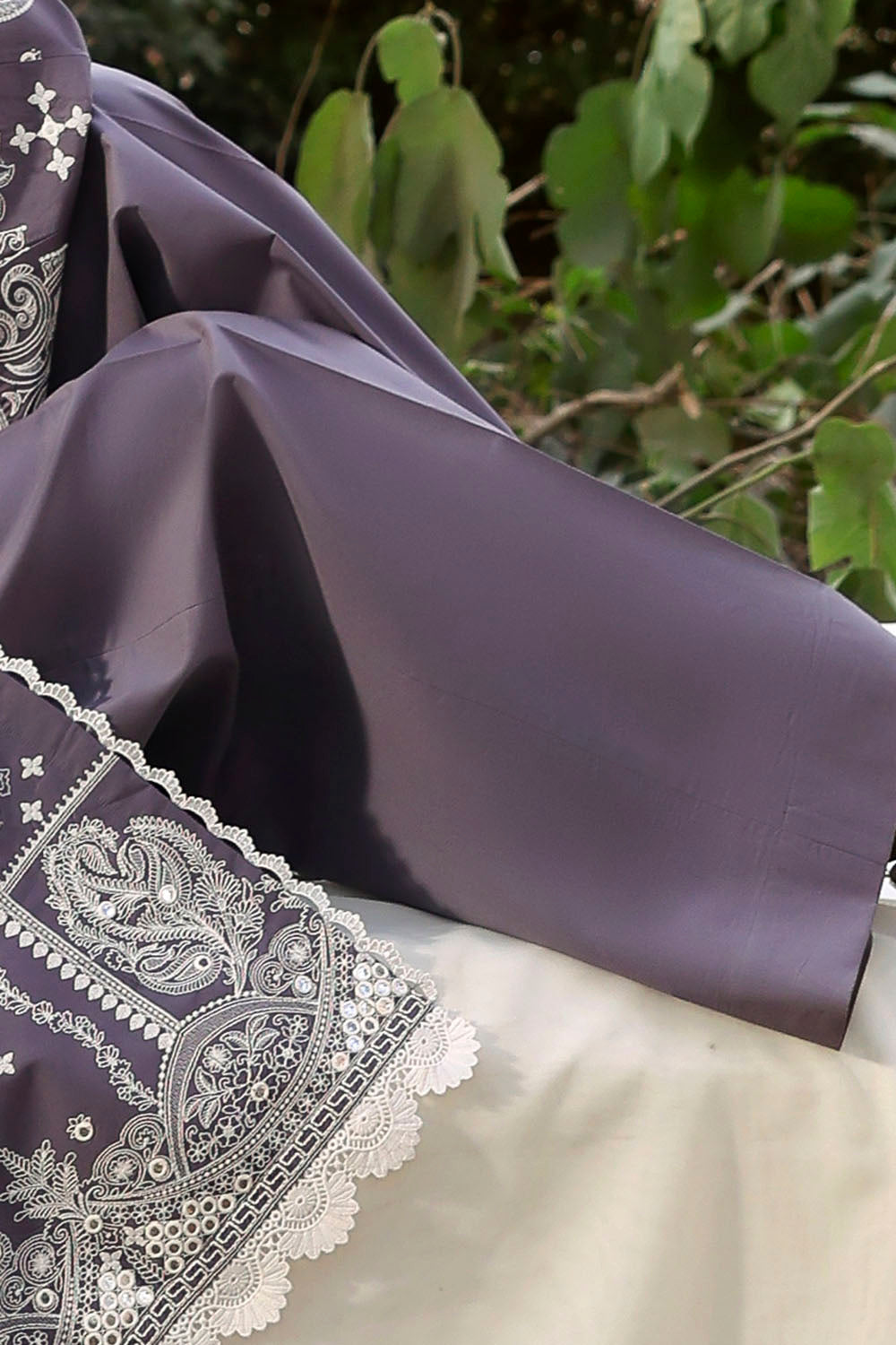 - Sequins Embroidered Lawn Shirt Front & Sleeves. Dyed Lawn Back – 3.00 Meters