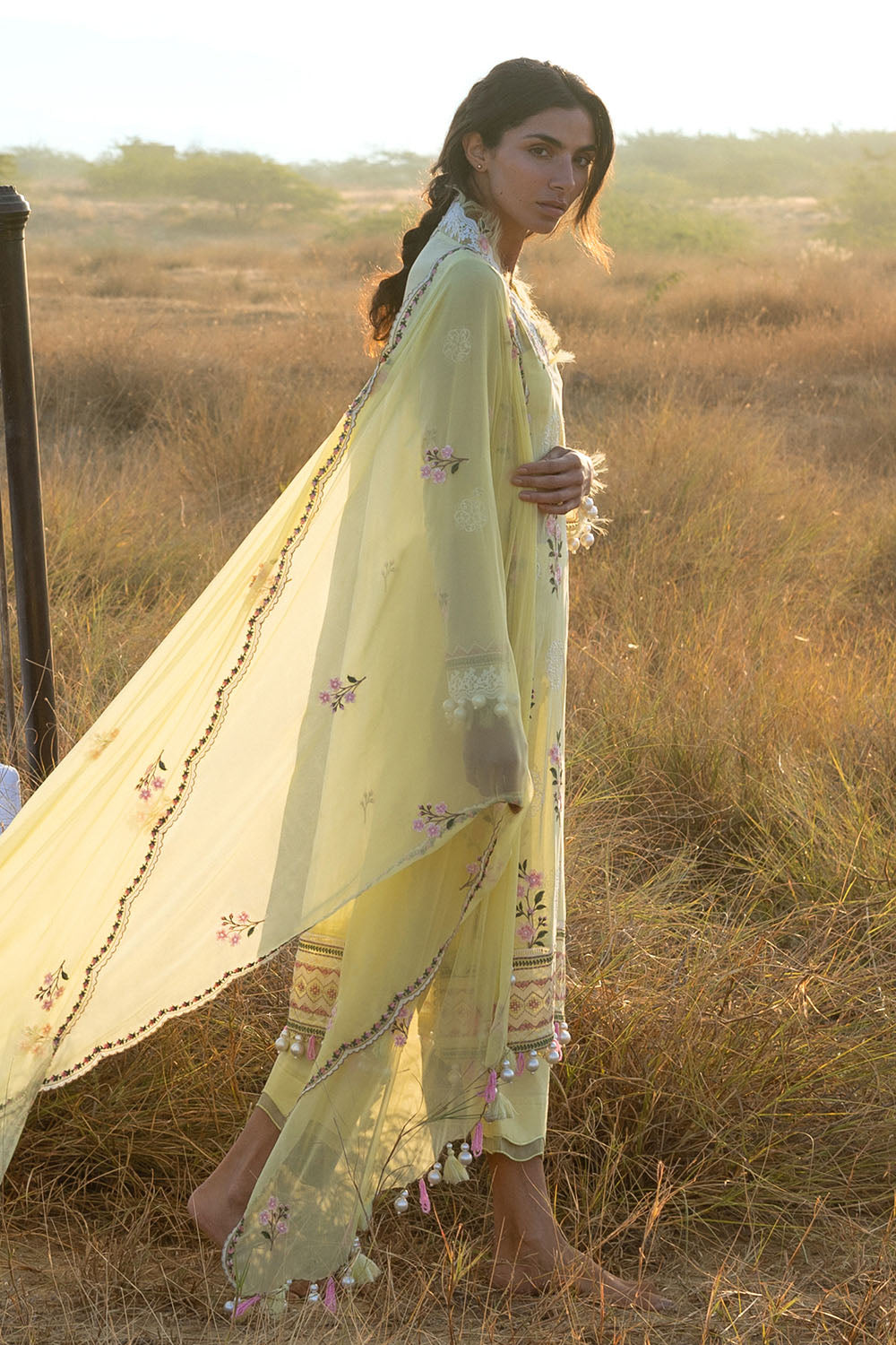 - Embroidered Swiss Voile Shirt Front, Back & Sleeves. Embroidered Border for Front & Back – 2.95 Meters