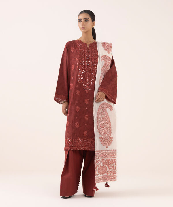 Dyed Embroidered Cotton Jacquard Shirt Front Panels 3pc