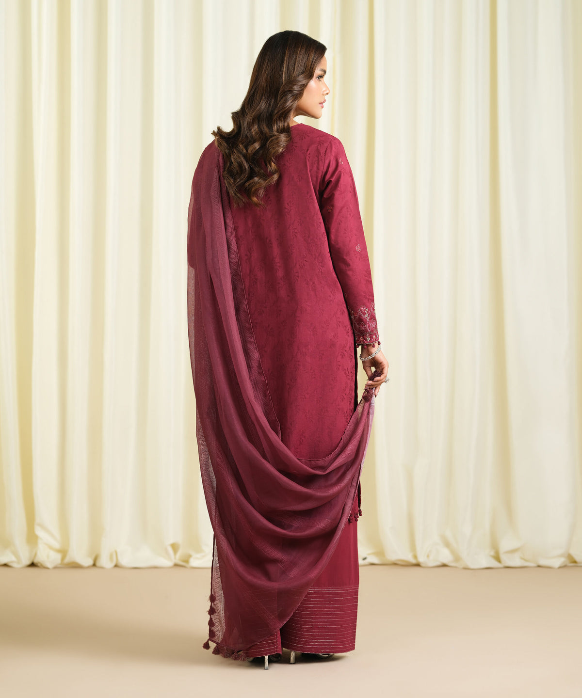We try to make your dress as closer as possible to the model picture. We guarantee 100% original branded dress however there can a slight difference between your stitched outfit and the model picture because: