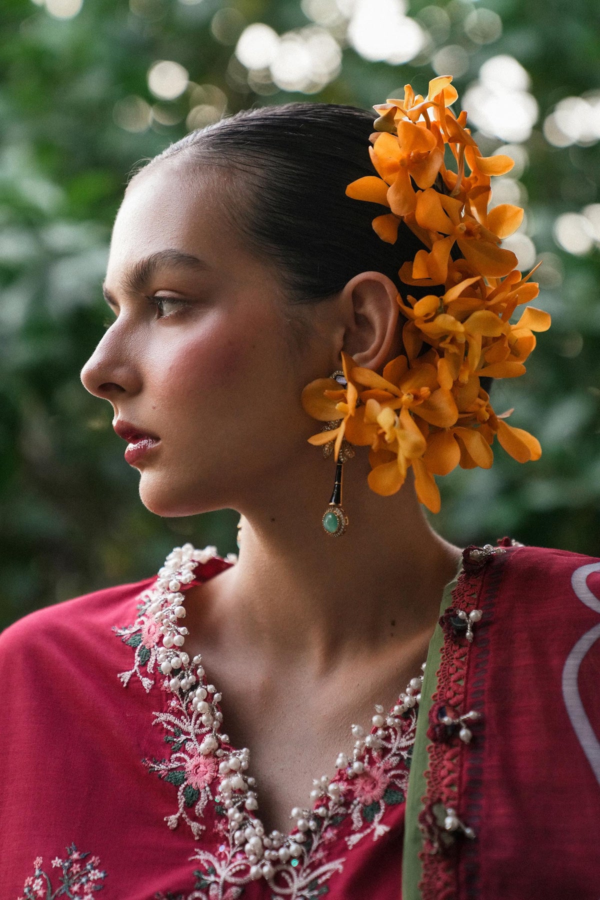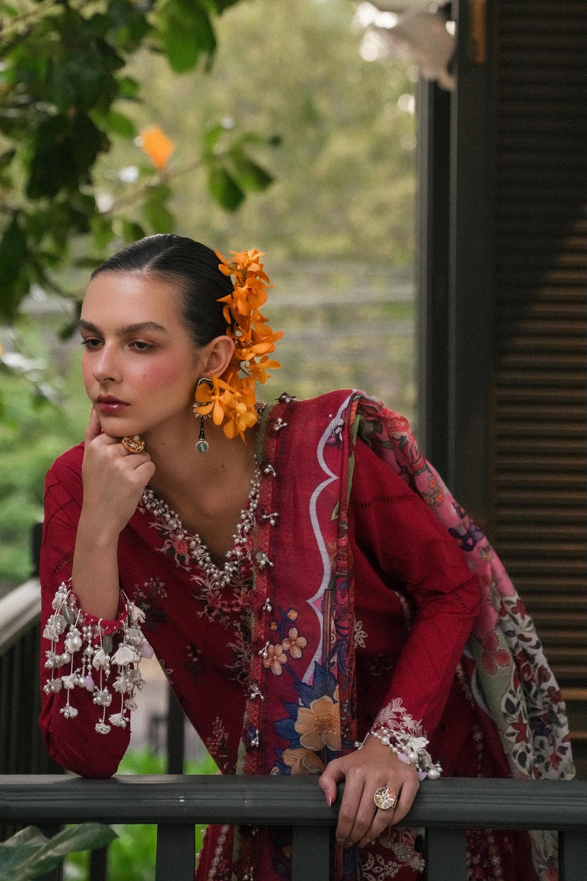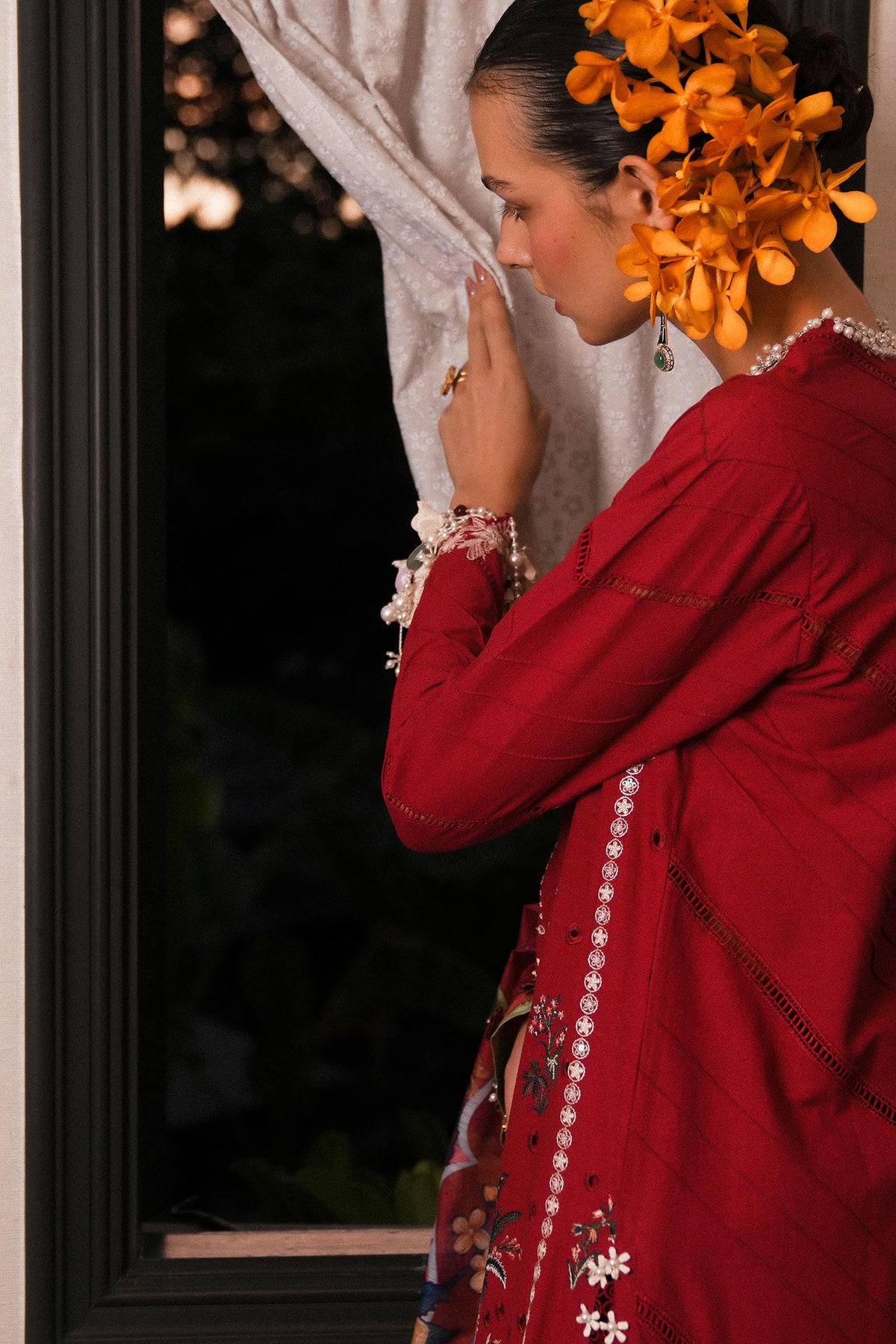 Sana Safinaz 3 Piece Custom Stitched Suit - Red - LB29569