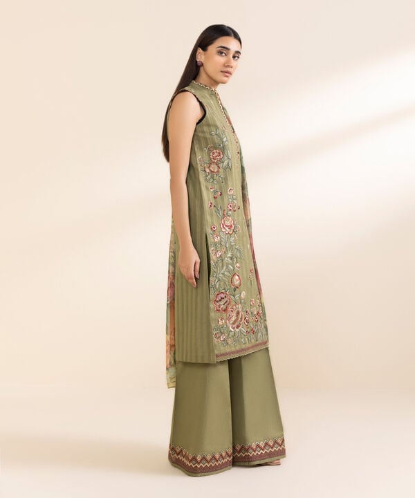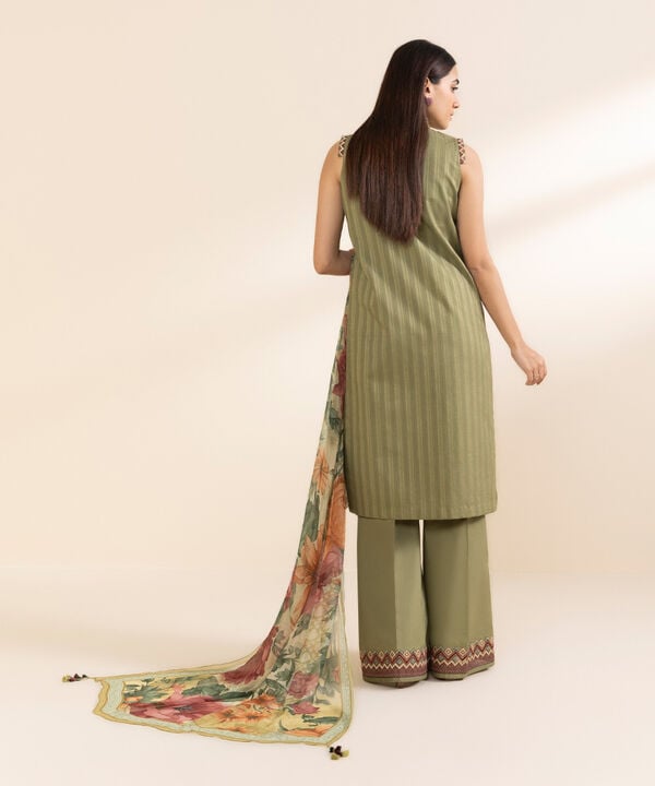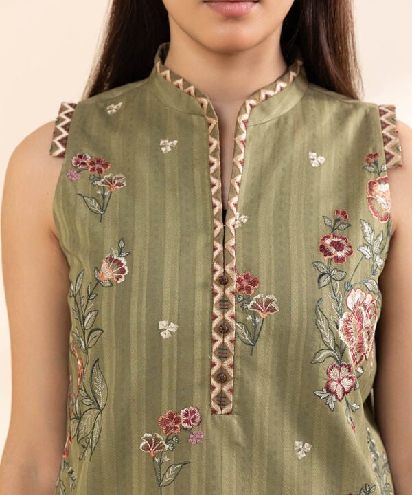 Dyed Embroidered Textured Cotton Shirt Front 0.70m