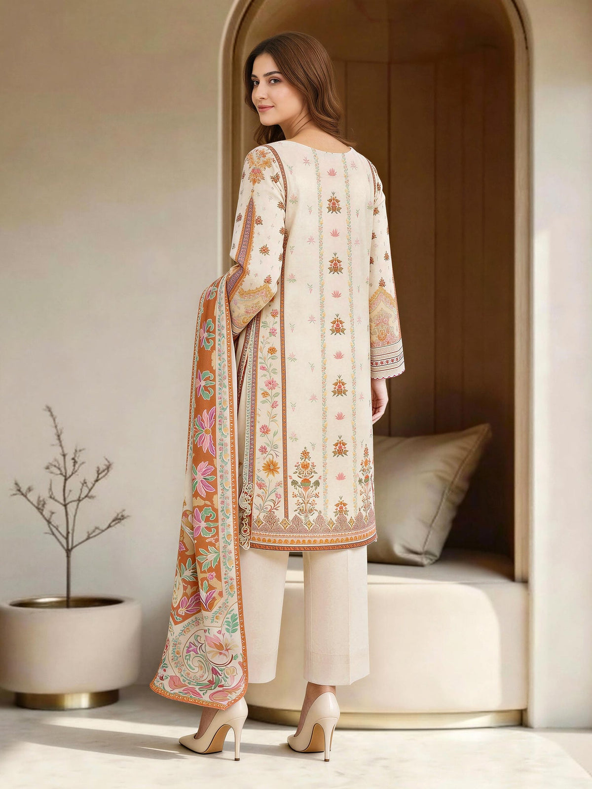 We try to make your dress as closer as possible to the model picture. We guarantee 100% original branded dress however there can a slight difference between your stitched outfit and the model picture because: