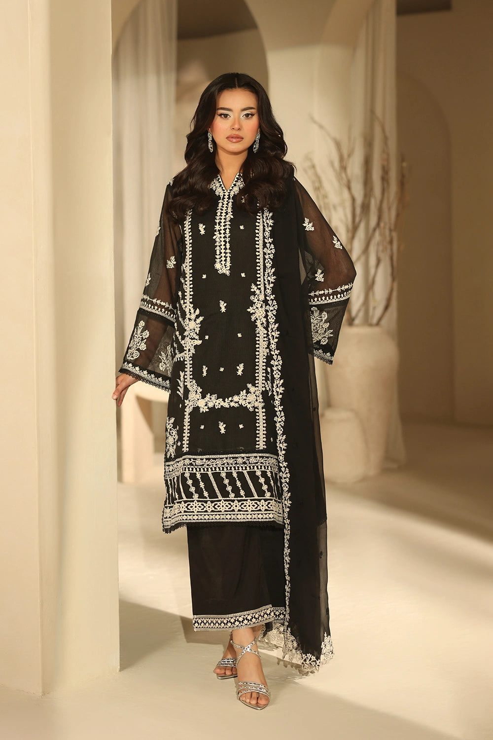 • Embroidered Chiffon Dupatta: 2.5 yards