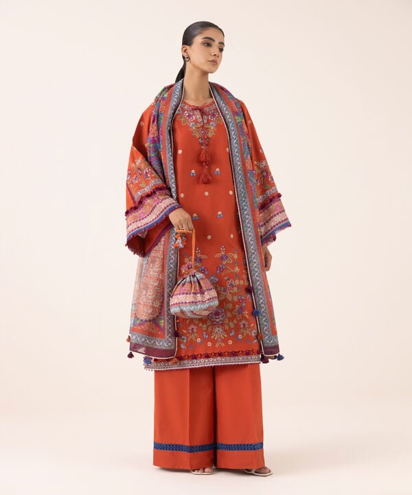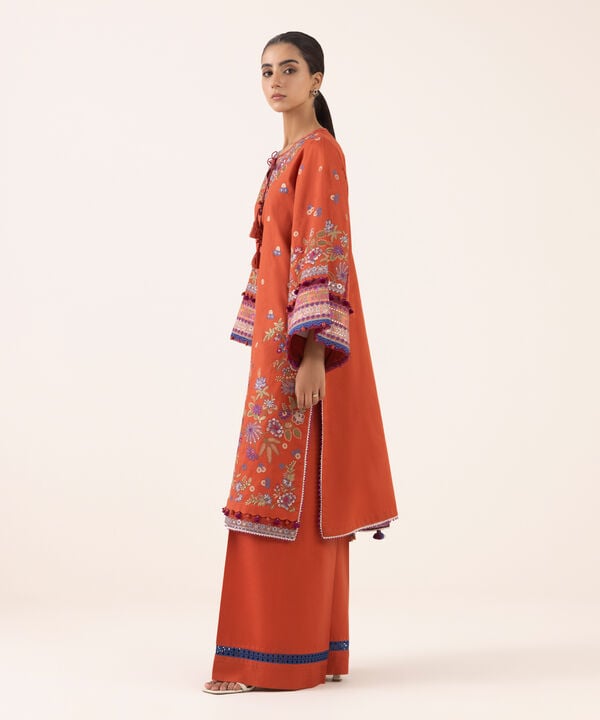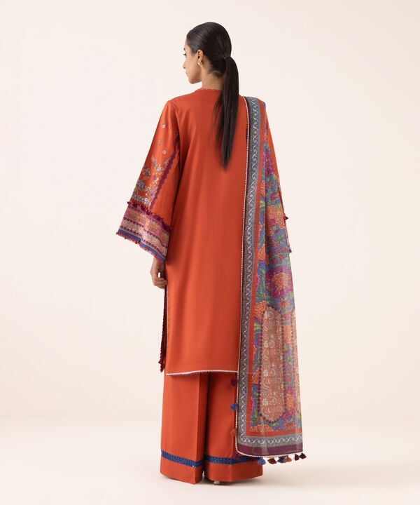Dyed Embroidered Light Cotton Satin Shirt Front Panels 3pc