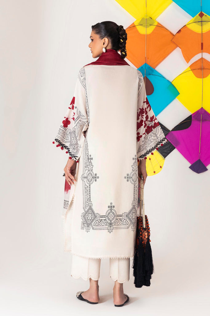 Sana Safinaz 3 Piece Custom Stitched Suit - Off-White - LB31121