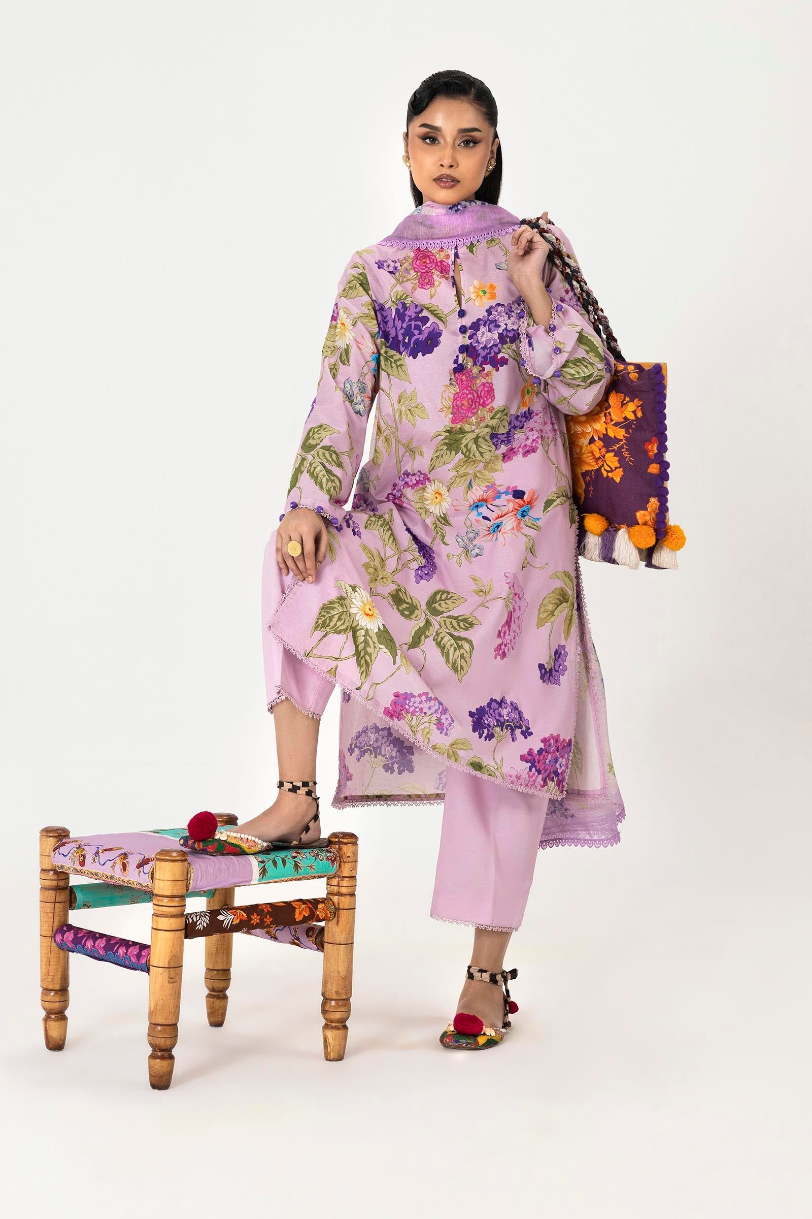 Sana Safinaz 3 Piece Custom Stitched Suit - Purple - LB31123