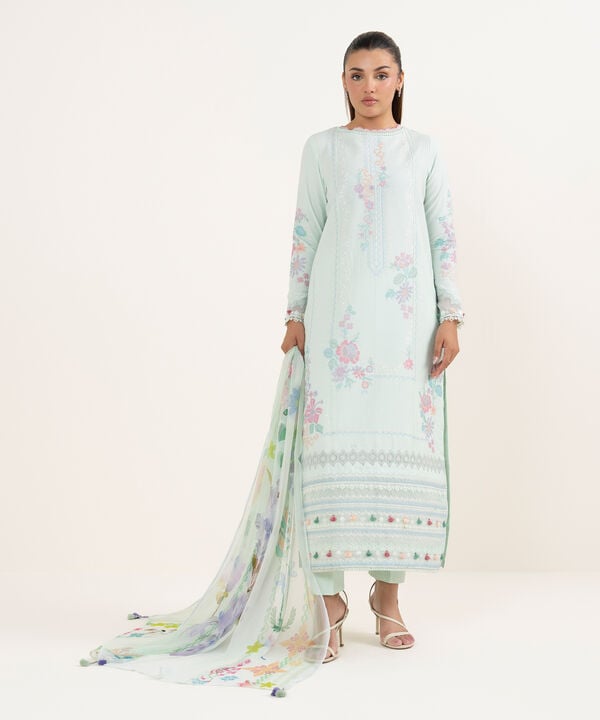 Dyed Embroidered Dobby Shirt Front Panels 3pc