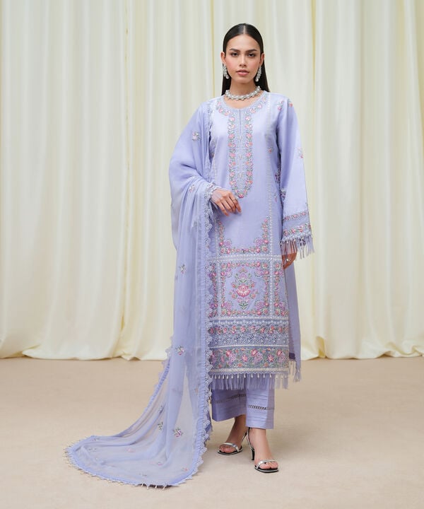 Dyed Embroidered Cotton Net Shirt Front Panels 3pc