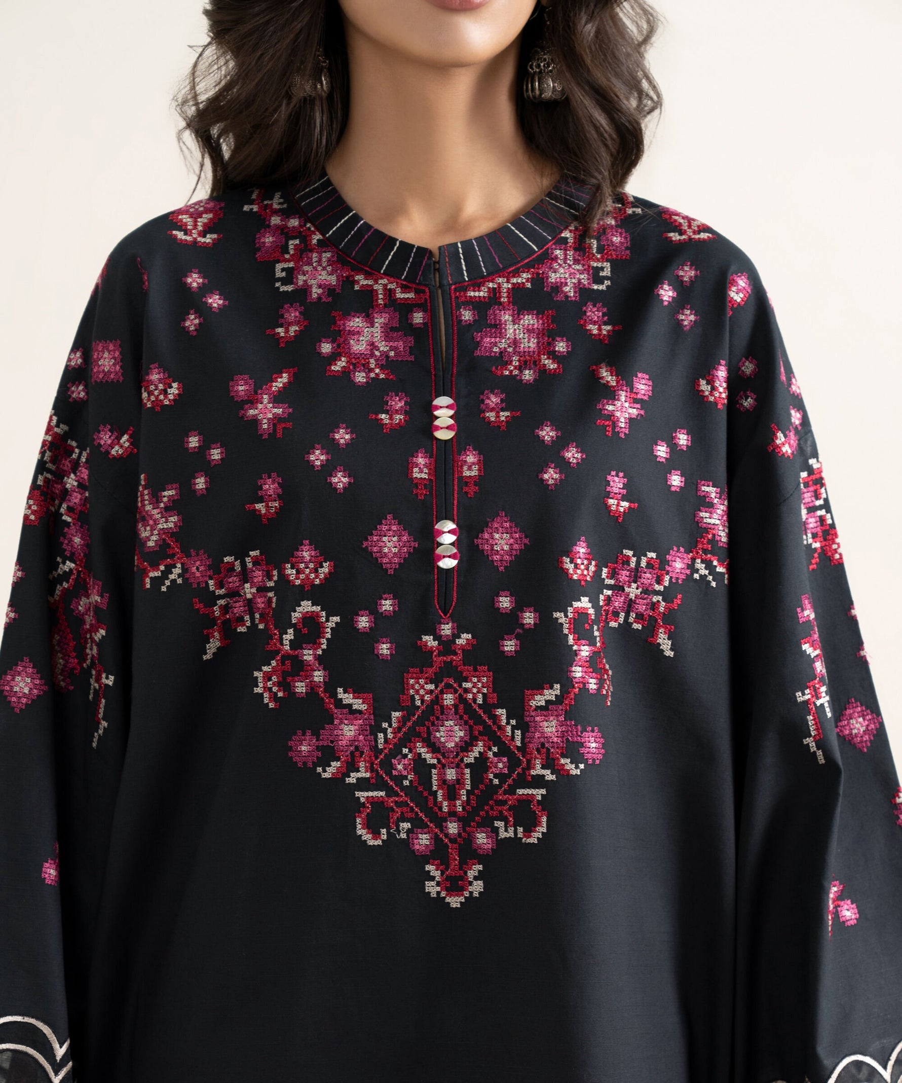 We try to make your dress as closer as possible to the model picture. We guarantee 100% original branded dress however there can a slight difference between your stitched outfit and the model picture because: