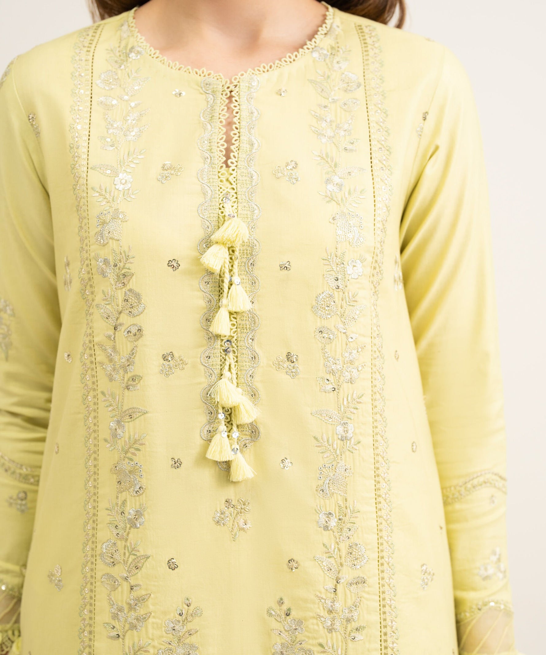 Embroidered Fine Cotton Satin Shirt Front Panels 3pc