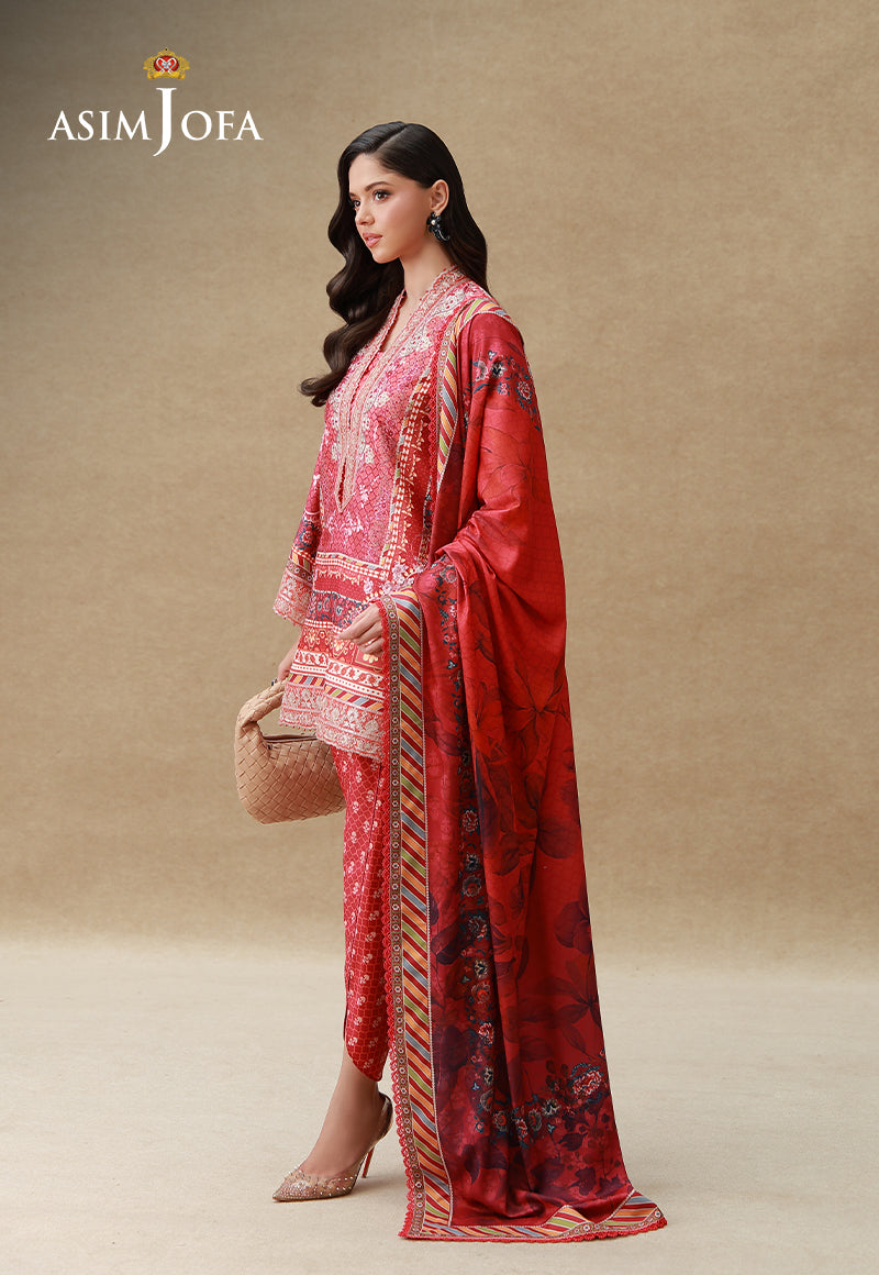 Asim Jofa 3 Piece Custom Stitched Suit - Red - LB31255