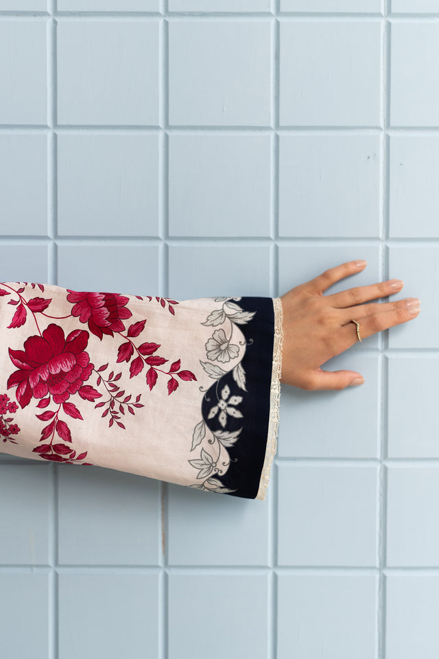 Unit price perA botanical blue print shirt on an off-white base with all-over floral printed pants, paired with a light chiffon dupatta—fresh, detailed, and full of ease.