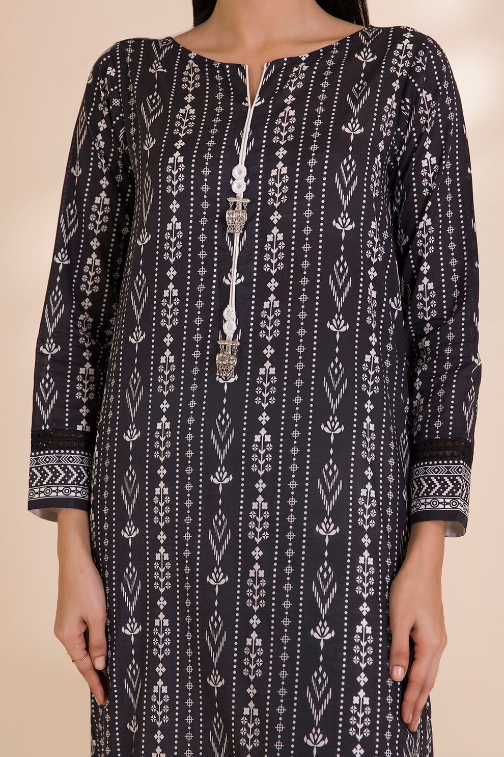 We try to make your dress as closer as possible to the model picture. We guarantee 100% original branded dress however there can a slight difference between your stitched outfit and the model picture because: